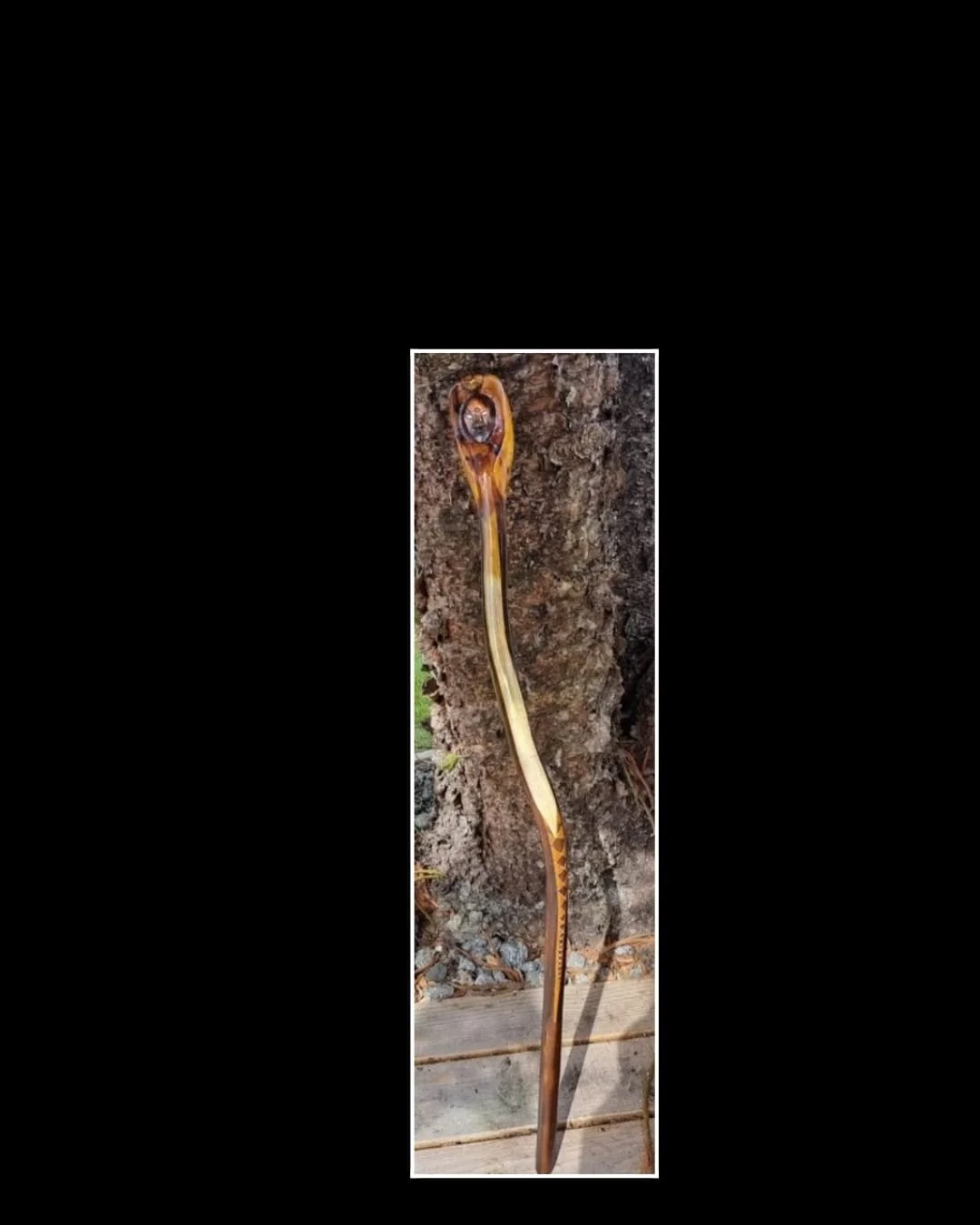 My IC4U Walking Staffs: They are one of a kind crafted specifically for you and your personal needs. They are handcrafted from exotic woods and refined and refinished with you in mind. My intent as I create your Staff is to channel the thought that this Staff would lead you from the dark to the light. …..IC4U Walk With Me. bubumanart